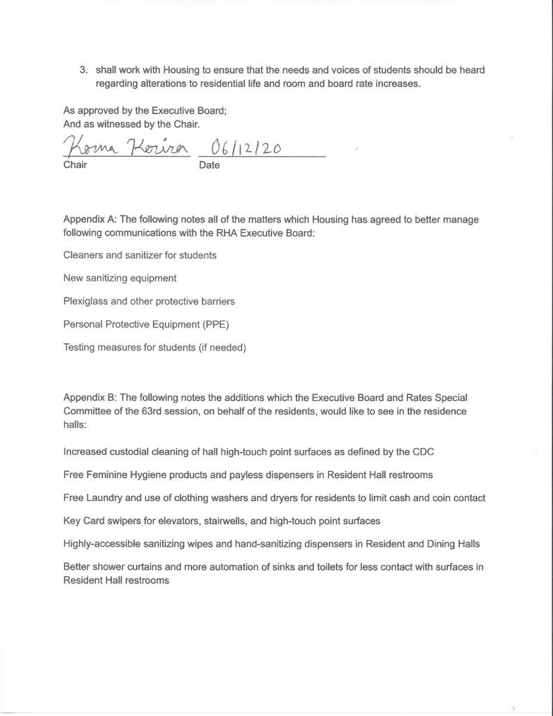 In terms of housing, there was a successful vote for a cost increase of 1.9 percent. According to The University Record(2020), “The increase will meet rises in day-to-day operating costs while also supporting investments in public health measures to reduce transmission of COVID-19,”(Don Jordan). This is in line with the concerns of residents that RHA has advocated for with housing. Our statement on rates was as follows: